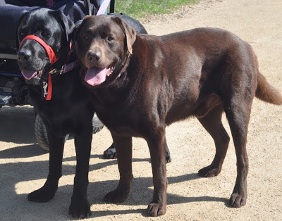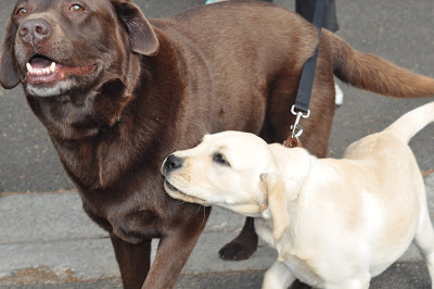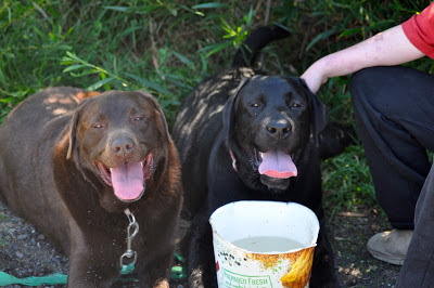 After this last race around it was starting to get very cold and so foggy that we barely see our paws in front of our noses so the humans decided it was time to start heading home but before that a group photo of all us labradors together.In case you were wondering yes treats are on offer. After these photos we were leashed up and Arli and I started walking home.