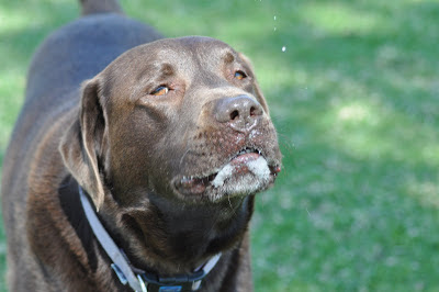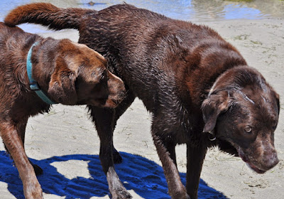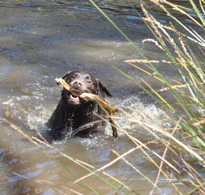 Suddenly as if by magic it was though us black labradors were appearing out of the fog. First it was just Arli and I then we had population explosion. We all decided to have a great race through the fog.