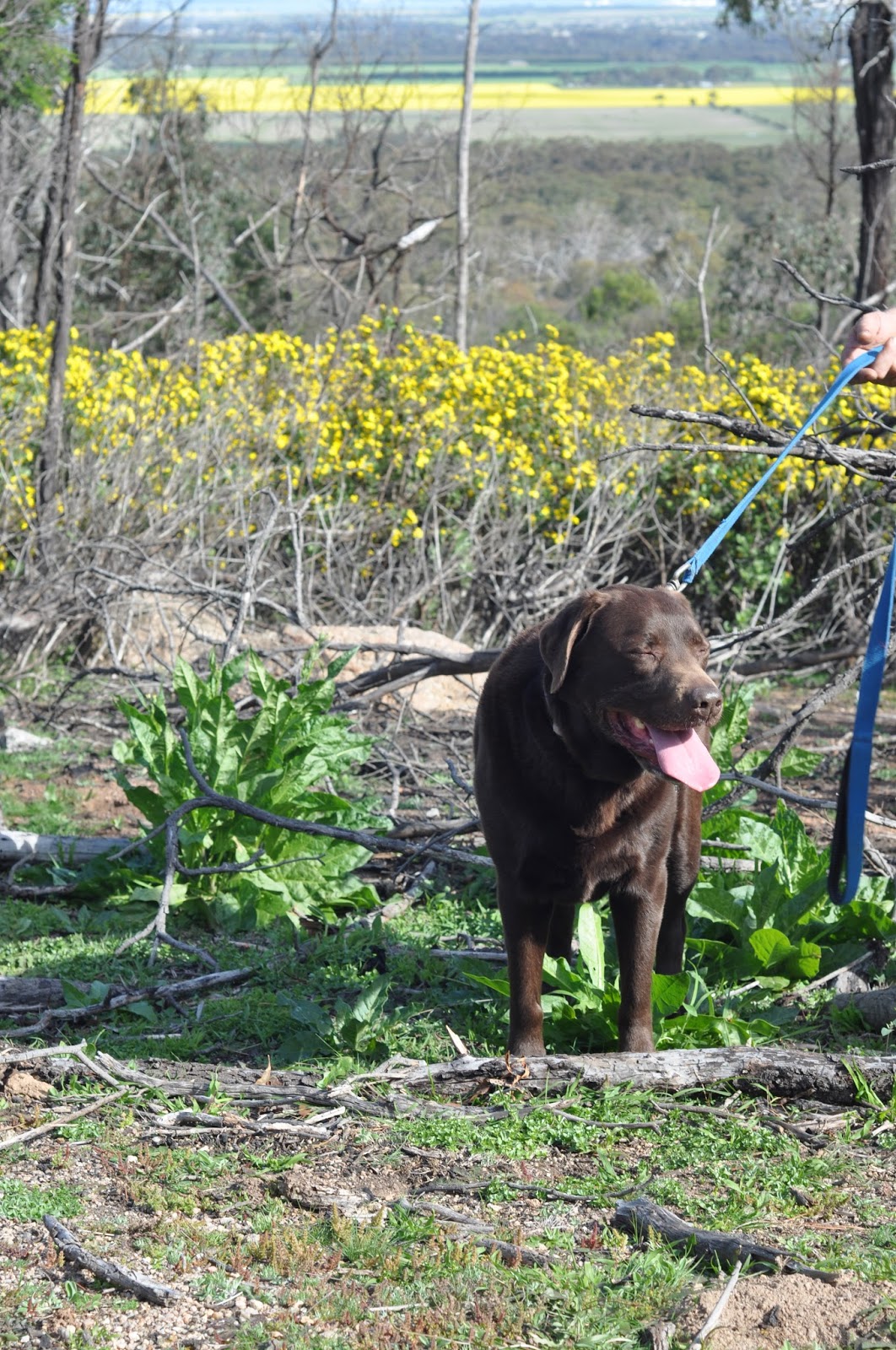 Once the car was parked we quickly headed off towards the walking tracks. The beginning of our walk. Don't the gum trees all look nice and green still? It didn't take Jet long before he had sniffed out the first interesting smells.