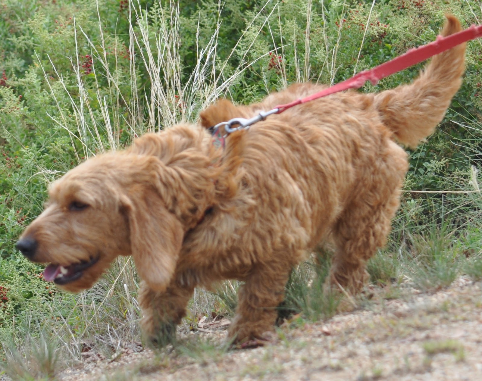 She's a sweetie. We're becoming more aware of the variety of Bassets in France--and probably other countries. The only problem with them is when they get a scent...they're off. So we can see why she had to stay on the lead.
