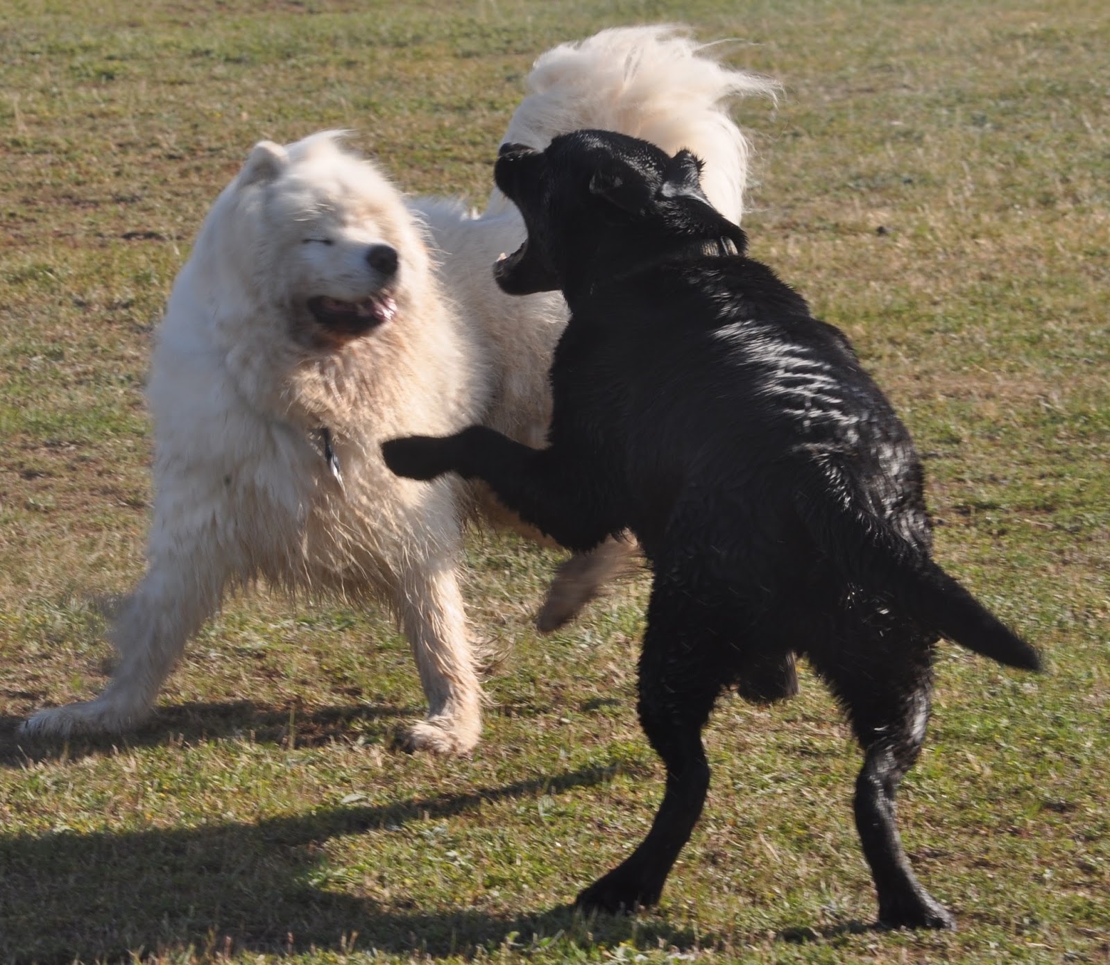 After our lovely swim Jet and Turtle decided to have a pawesome game of wrestling.