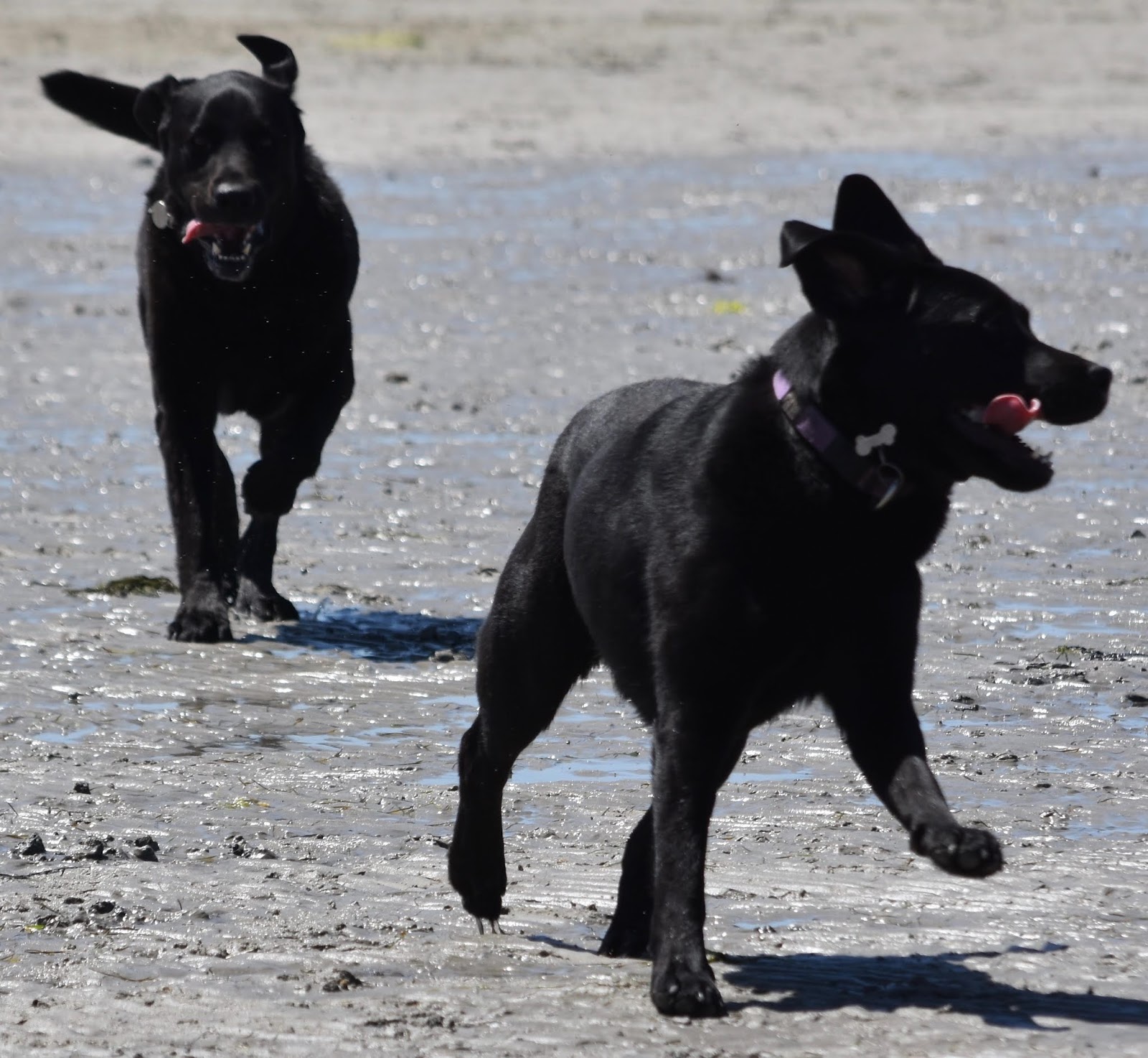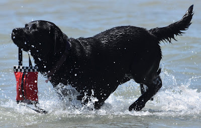 Jet was enjoying a nice splash in the water when we both spotted something truly amazing coming towards us down the beach! Could It Be?! Is it she?! It was our best doggie friend Skye and she had bought Wilma as well. We were so excited we charged over to say hello. Then Chaos reigned!!Once we had calmed down a tiny bit we decided to go for a nice cool down paddle in the sea but it wasn't long until chaos returned.